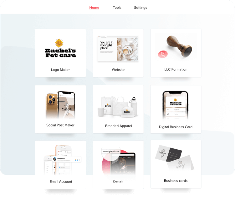 Everything you need to launch and grow your business. You can design a logo, launch a website, print business cards, form an LLC and much more.