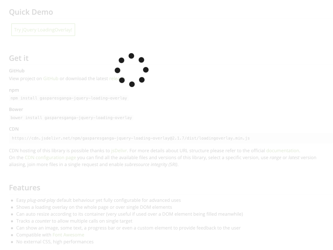 For example, you can trigger a loading overlay when a page is loading, or when a form is submitting.